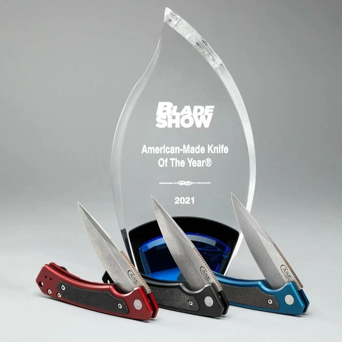 Case Knives have done it: the award for the “American Made Knife of the year” went to the Case Knives Marilla in 2021. This knife didn’t just win a prize, however, but represents a completely new branch that the traditional manufacturer is tapping into here. The Marilla is one of the few truly modern pocket knives you’ll find in the Case Knives portfolio. Just like the traditional folders, this knife is made entirely in the USA with a lot of handwork and attention to detail. The colored anodized aluminum handle scales are not only good in the hand, but also ensure that the weight is absolutely within limits – after all, this is a large working folder. The G10 inlays once again ensure that the Marilla rests securely in your hand when you flip the blade out of the hilt via the flipper tab.