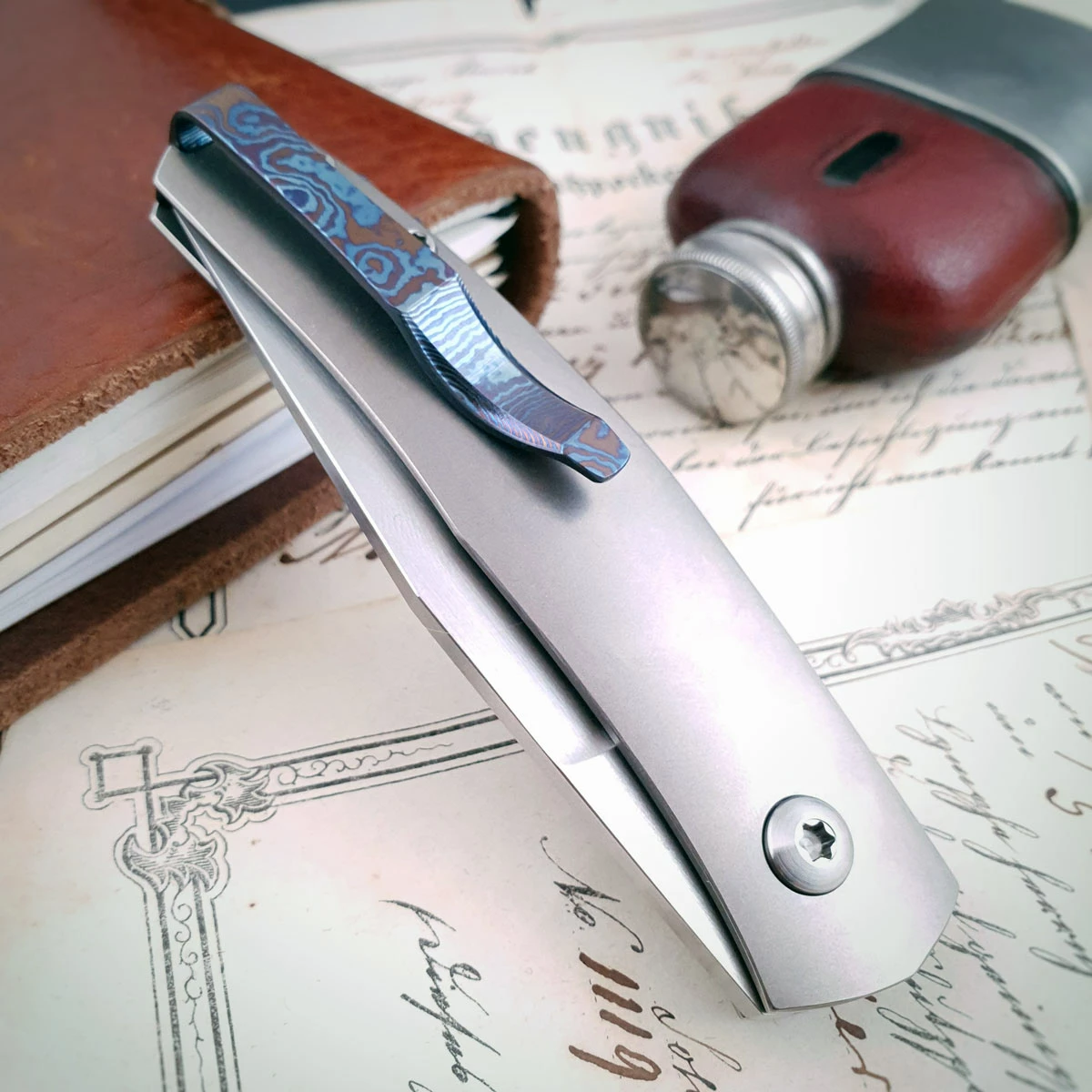 Jens Ansø Casino grey with Timascus Backspacer and clip