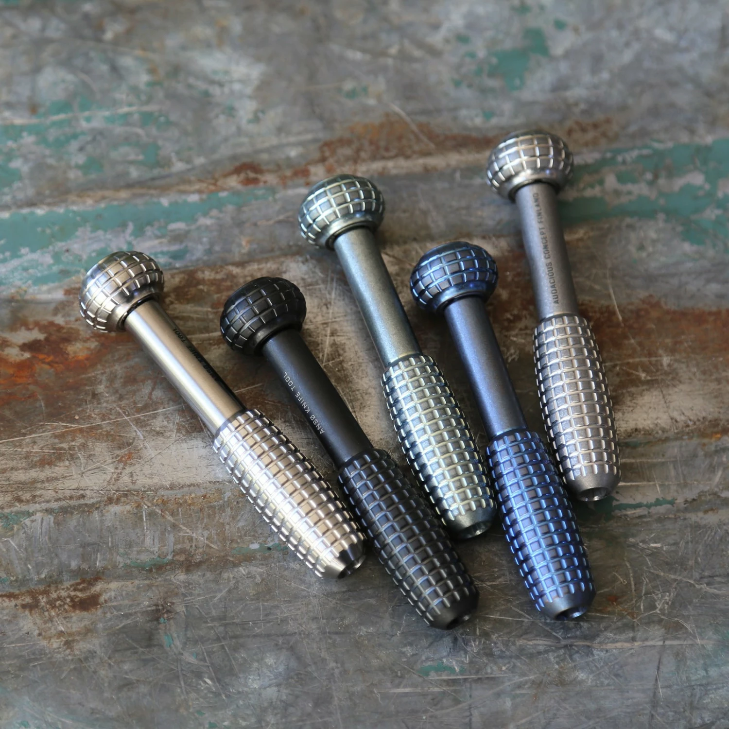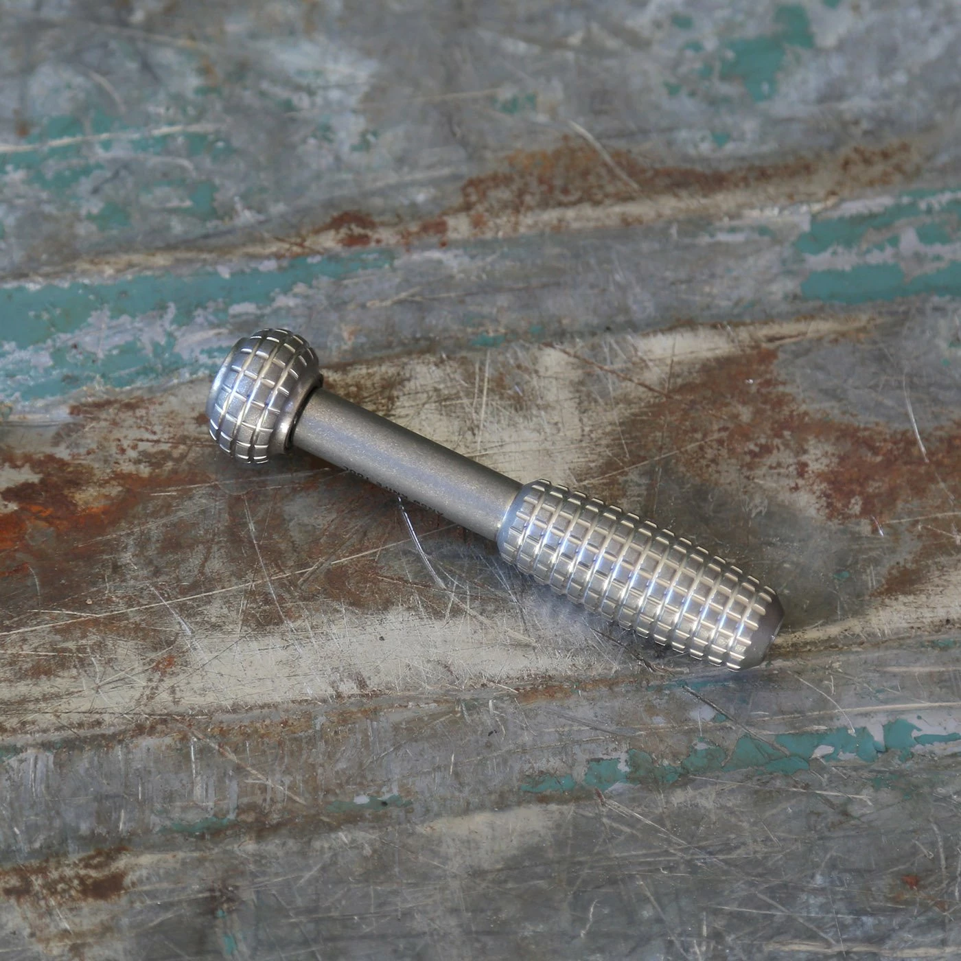 The Bit Driver is made entirely of titanium and offers an optimal hand position thanks to the Frag Pattern. The built-in ball bearings not only ensure a velvety smooth rotation of the driver but also offer you great fun. Fidget factor: very high! The holder for the bits fits the common 1/4″ bits – Jens Anso himself prefers to use the screw heads of the traditional manufacturer WIHA from Wuppertal.