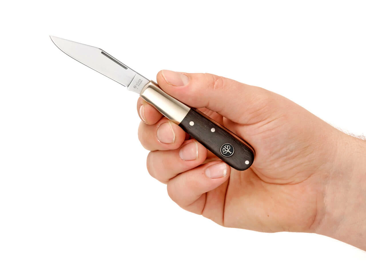 The knife is opened with two hands via the nail cut and has a slipjoint closure.