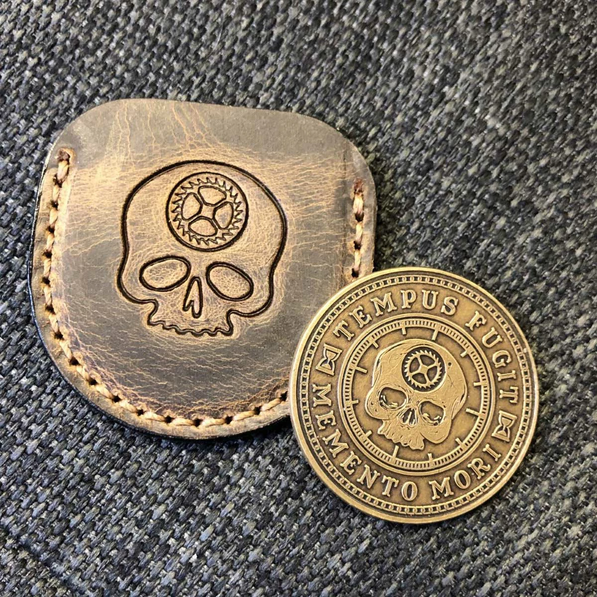 Carpe Diem Leather Sleeve for Coins or Tempus Fugit Stone