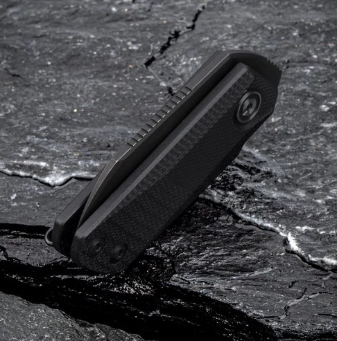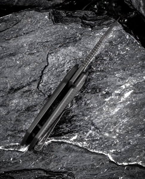 Here you get an EDC pocket knife that is truly a mini EDC. The Ki-V is Ostap Hel’s first collaboration with Civivi and is intended as a small office pocket knife for the lightest everyday cutting tasks. The lack of a lock also makes it portable almost anywhere, so you should basically never have a problem with this little pocket knife. The design of the knife is based on the classic Kiridashi knives of Japan and features a highly modern look despite the historical background. To prevent the blade from simply falling back when open, a liner with your detent ball presses down on the blade root, creating a sort of flip-joint mechanism. The front flipper and ball bearings make for a lot of fun in the office and annoyed colleagues. For the blade steel, Civivi relies on the proven 9CR18MOV, which can be easily resharpened and is extremely rust-resistant. The handle is made out of black g10.