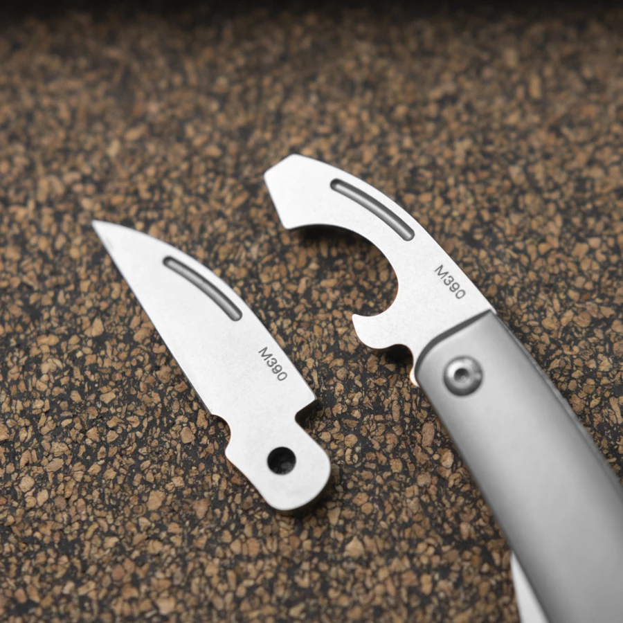 - Titanium handle scales and blades made of M390 steel