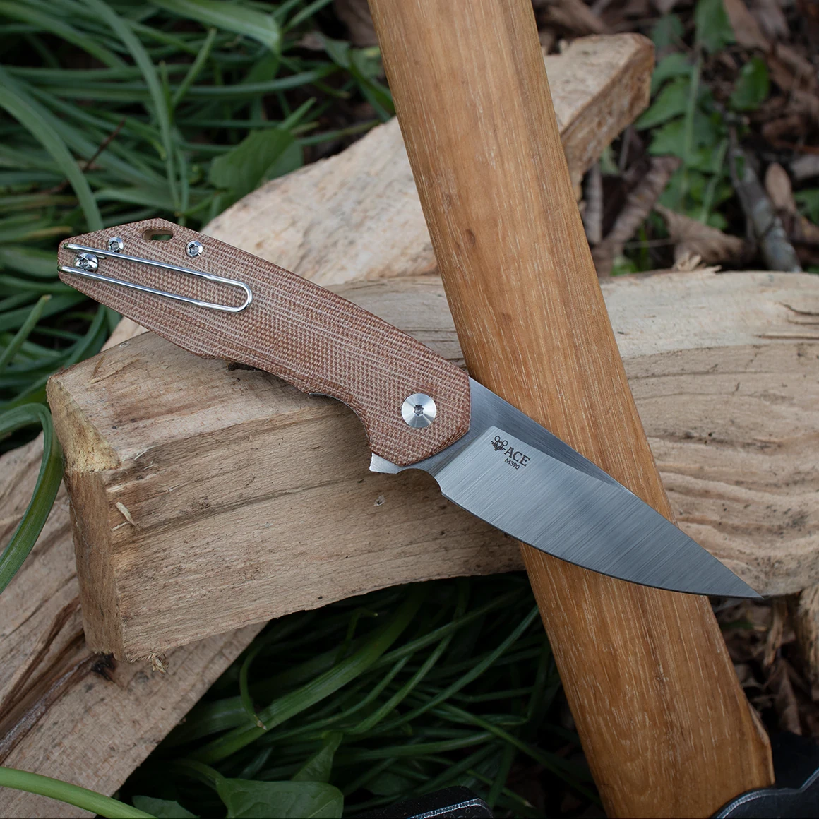 For the handle material you have the choice between green or natural Micarta. There is also a very cool all-black version with PVD finish on the blade and black G10 handle scales. A solid brass backspacer provides a nice visual contrast and improved hand grip. The whole thing is rounded off by a convertible wire clip – of course Deep Carry!