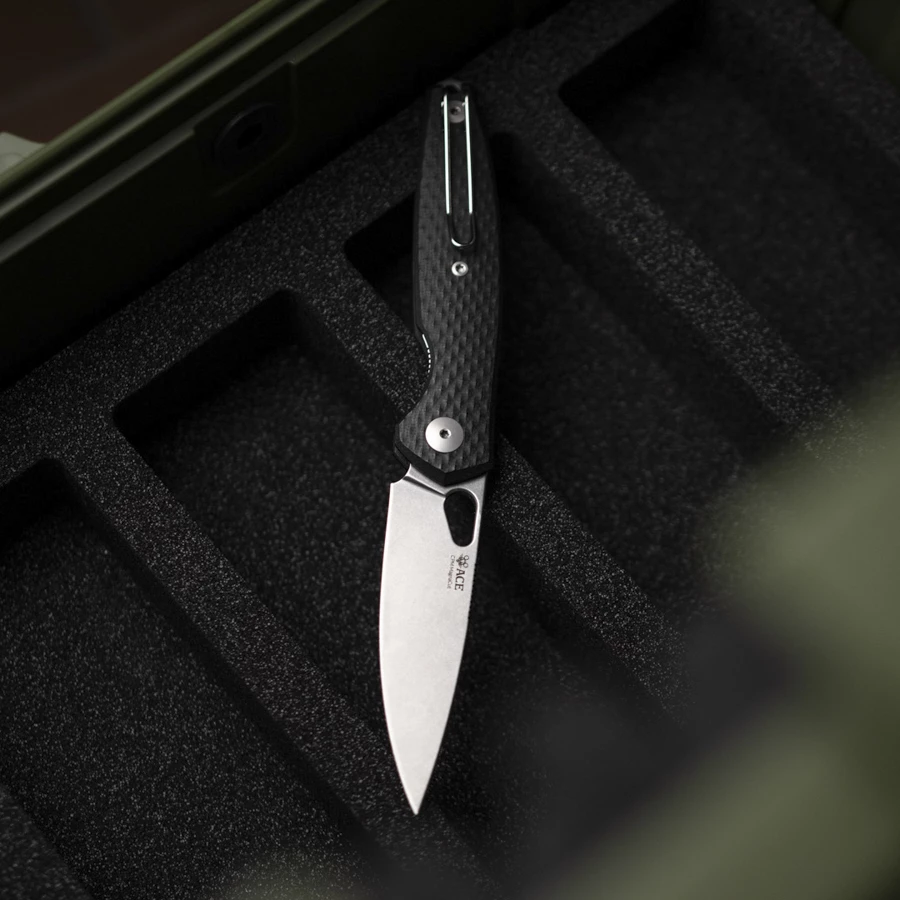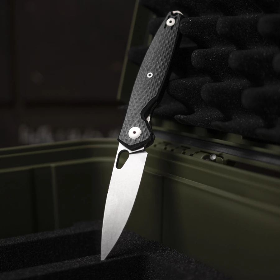 - Blade made of CPM MagnaCut steel with stonewashed finish