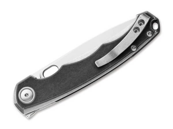 The swung shaped blade offers a great line with the ergonomic handle, which fits small to large hands great in the hand. The carbon overlays create an exciting look in combination with the solid titanium plates that provide the knife with good stability. You can open the Eclipse either via the thumb hole or from the tiny little flipper. Honestly? We were a bit skeptical at first whether such a small flipper tab would work. In practice, the part is a blast. The blade fires with tremendous momentum from the handle and already after one flip, you realize how much “fidgetfactor” is in the Eclipse.