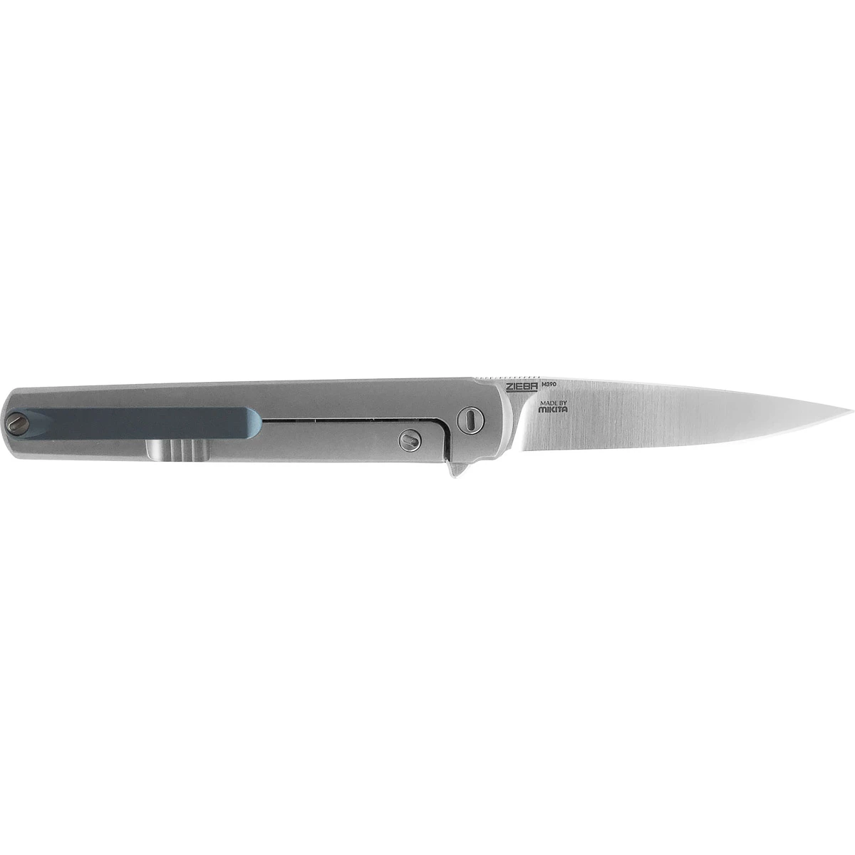 - Drop point blade made of M390 with satin finish