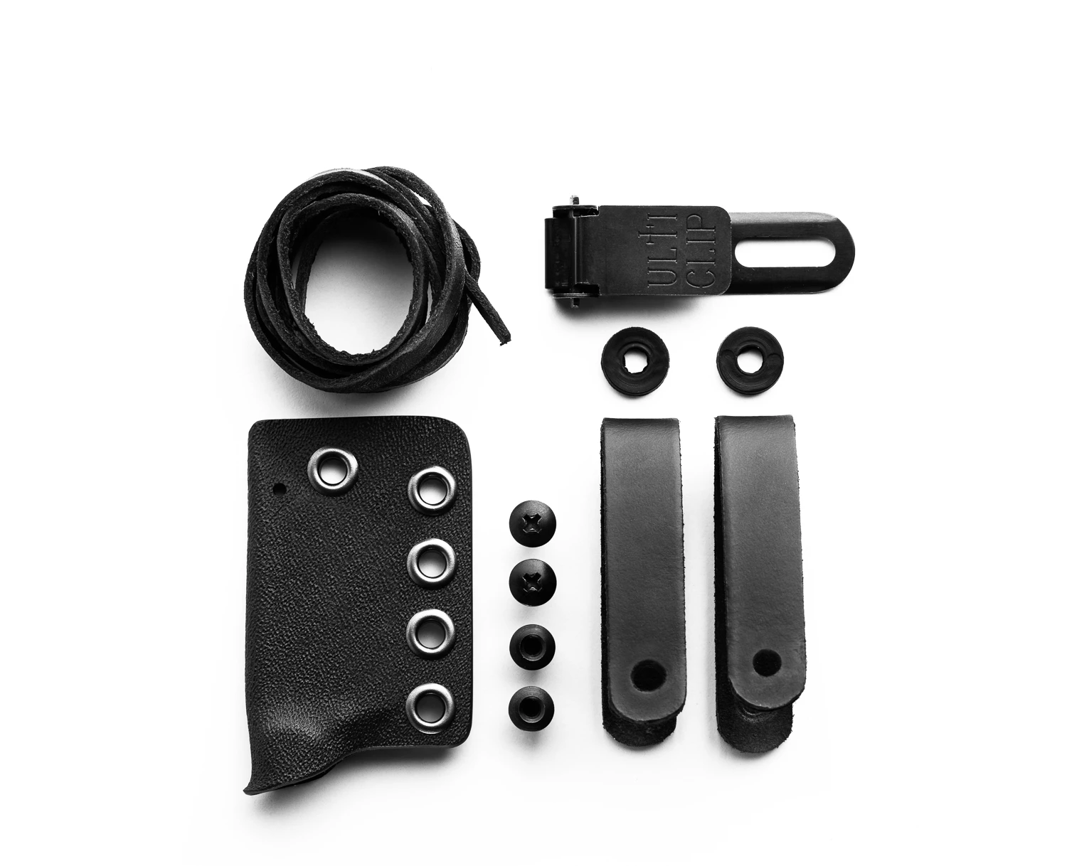 - 2 x fastening screws and spacers for ULTICLIP and leather laces (for neck carry)