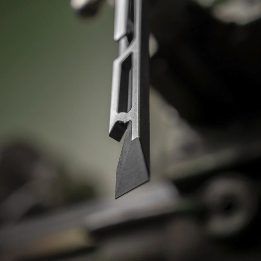 The Side Piece has a wide lifting tip, which is perfect for versatile applications. For example, as a scraper or for opening packages or boxes or cans.