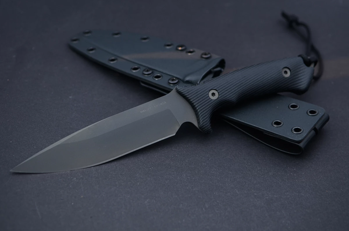 he Difensa comes with an initially very tight ( = secure) Kydex sheath. This is intentional: the knife should sit absolutely tight and secure so that there is no play even over a long period of use. Simply carry and use the knife a few times – the Kydex loosens a little, but still remains tight enough.