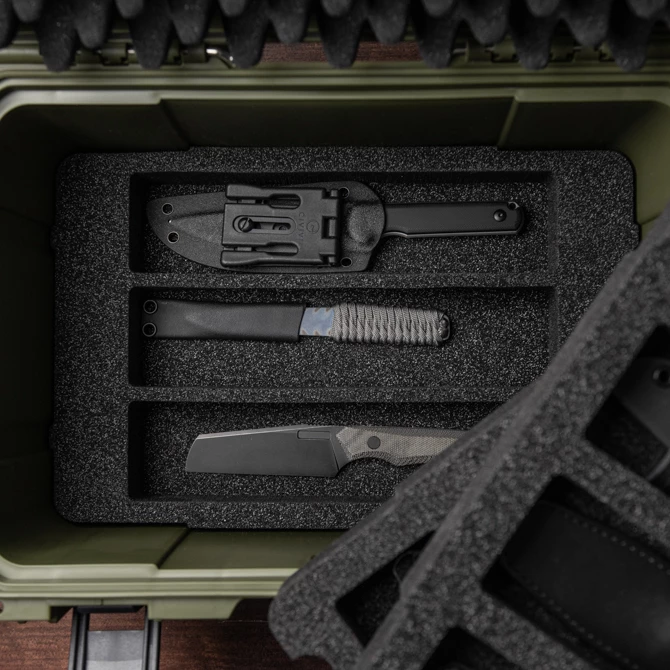 The bottom inlay offers space for 3 medium fixed knives