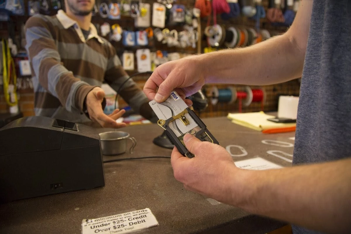 Depending on how many cards you carry in the Contour Wallet, the locking pin can be adjusted in its position, so that there is always enough tension on the locking button. By the way, this button lock is specially designed and manufactured by Trayvax and has a certain satisfying fidget factor. The mechanism offers a unique feedback that feels secure and almost magnetic.