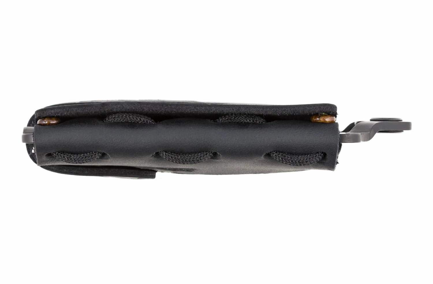 On the frame sits the cover made of oil-tanned leather held in place by thick mil-spec paracord. A number of 3 to 10 cards can be stored safely. The leather cover is cut so that it can be adjusted to the number of cards. The highlight of the Element Wallet is the button lock, which was custom made for these wallets and offers a unique, almost magnetic feeling when closing them. On the upper side of the wallet there is a window cut out in the leather to make your ID, bus or train ticket see through.