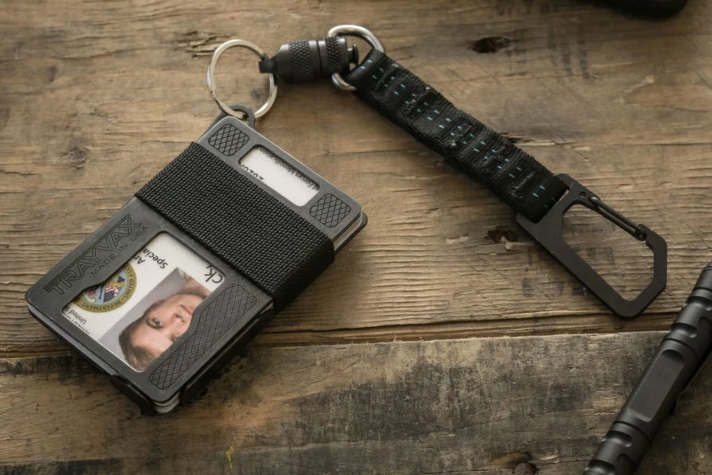 Trayvax offer an surprisingly simple but nonetheless ingenious solution. With the Link, your wallet can be easily attached to the belt loop of the pants or your belt with a small carabiner. On the other side there is a quick release swivel that can be opened with a light pressure on the easy access button. This way you can remove your Trayvax Wallet or keys with just one fast motion and still don’t have to worry about losing anything or even being robbed. Hook and swivel are connected by a loop made of extremely strong yet lightweight climb-spec nylon.