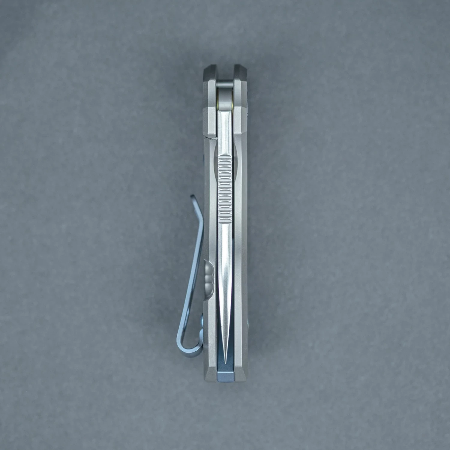 – Titanium handle scales/ Satin Finish blade