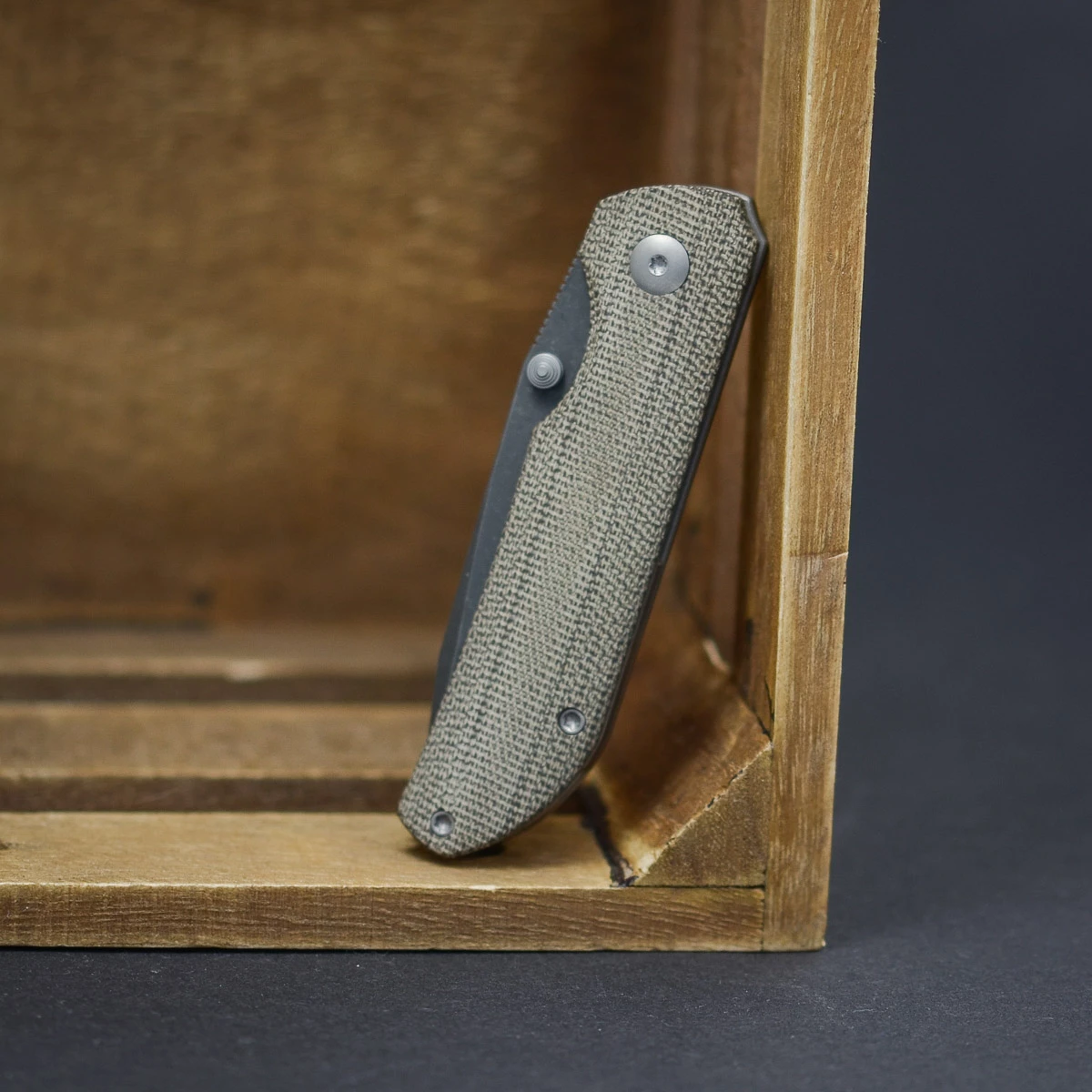 When it comes to the handle of the Micro Shrike, you’re spoiled for choice: choose between solid stonewashed titanium or a lightweight micarta trendy green or classy black.