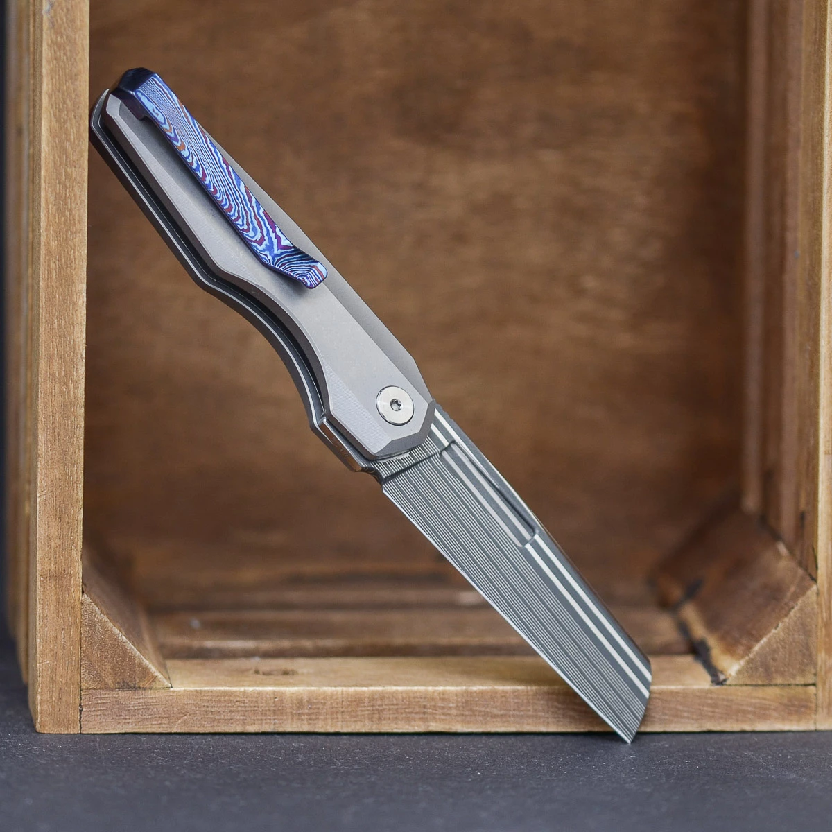 - Blade Finish: Bacon Damascus