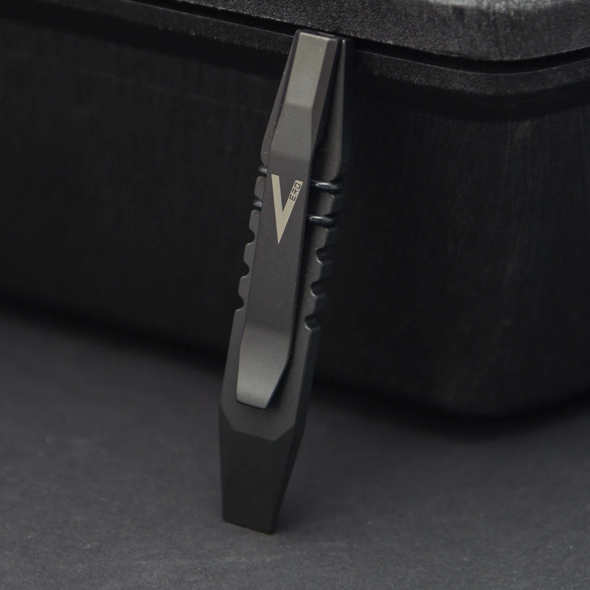 Vero Engineering has come up with an extremely well thought-out answer to theese problems in the form of the Fulcrum. The prybar is milled entirely from lightweight titanium, weighs a mere 29 grams and is hardly noticeable in the pocket thanks to the flat clip. The most brilliant thing about the Fulcrum is the possibility of carrying two micro-bits by held by two O-rings, which can be inserted on the top of the clip. baslcially you not only have a pry tool, but also a bit holder at the same time.