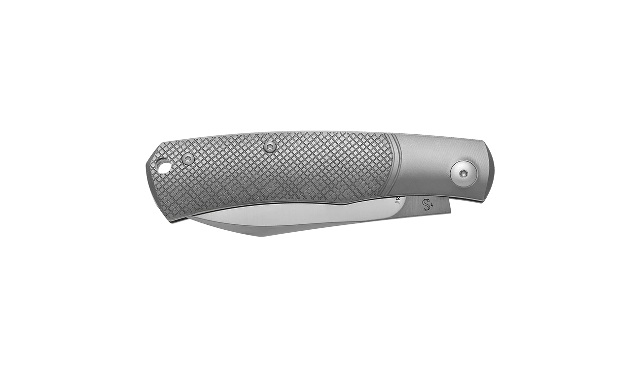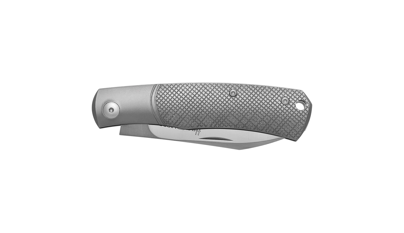 - Titanium handle with geometric CNC pattern