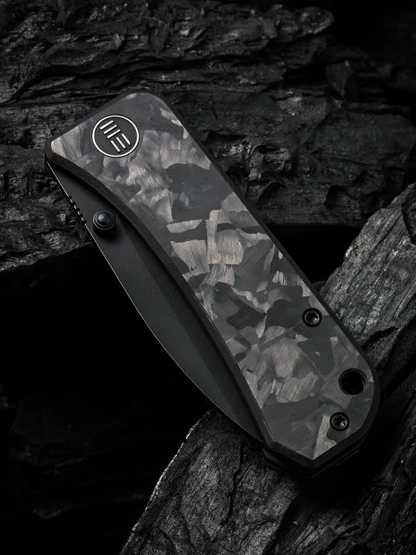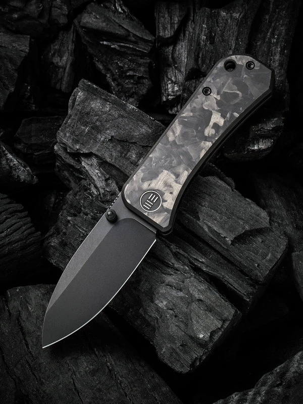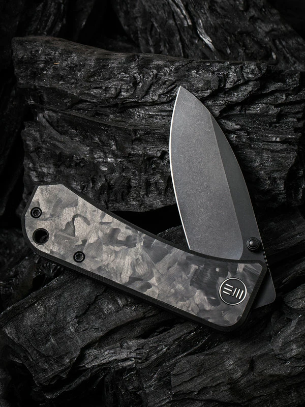 The blade is a very universally shaped Spearpoint blade (comes with a blackwash finish in this version) that has been given a large hollow grind. The genius here is that WE Knife have chosen such a thin grind that the Banter is an incredible cutting machine. The S35VN blade just flies through the cut material and is up to all cutting tasks in EDC. Ceramic ball bearings provide a smooth opening of the blade, giving the Banter a certain playfulness.