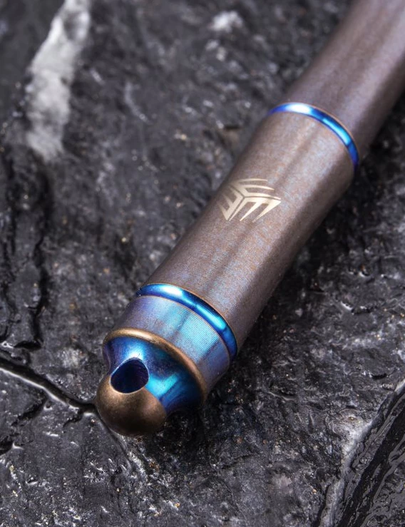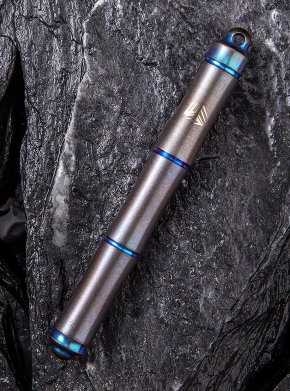 We are dealing with an incredibly light and compact titanium pen. That does not only looks great but also works perfectly despite its short length. Thanks to a small O-ring, the screw on cap stays absolutely tight and doesn’t come loose in your pocket. With only 16gr. the Syrinx Pen doesn’t account for any extra weight in your EDC. Thanks to the small lanyard loop it can be easily attached to your key chain as well.